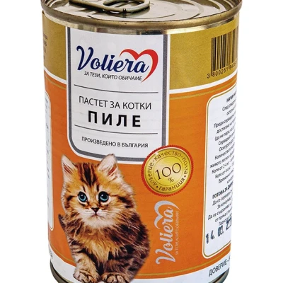 Производител: Фарма Универсал ЕООД,Стара Загора.Произведено в България.Пълноценна балансирана храна за котки с ограничена активност, отглеждана в домашни условия.Доставя всички необходими протеини,фибри,витамини,минерали и мазнини за добра здравословна форма.Състав:Пилешко месо и месни субпродукти-70%МОМ,пилешки бульон 25.4%,животински протеин 1,7%,желатин 1,7%,хемоглобин на прах 0,1%,плазма на прах 1,1%.Непредназначен за консумация на хората!Аналитични съставки: сурова пепел-1,39%,влага-79,01%,мазнини- 6,42%,протеин-11,93%,влакнини-1,39%. Нето тегло:е 0,410 кг.